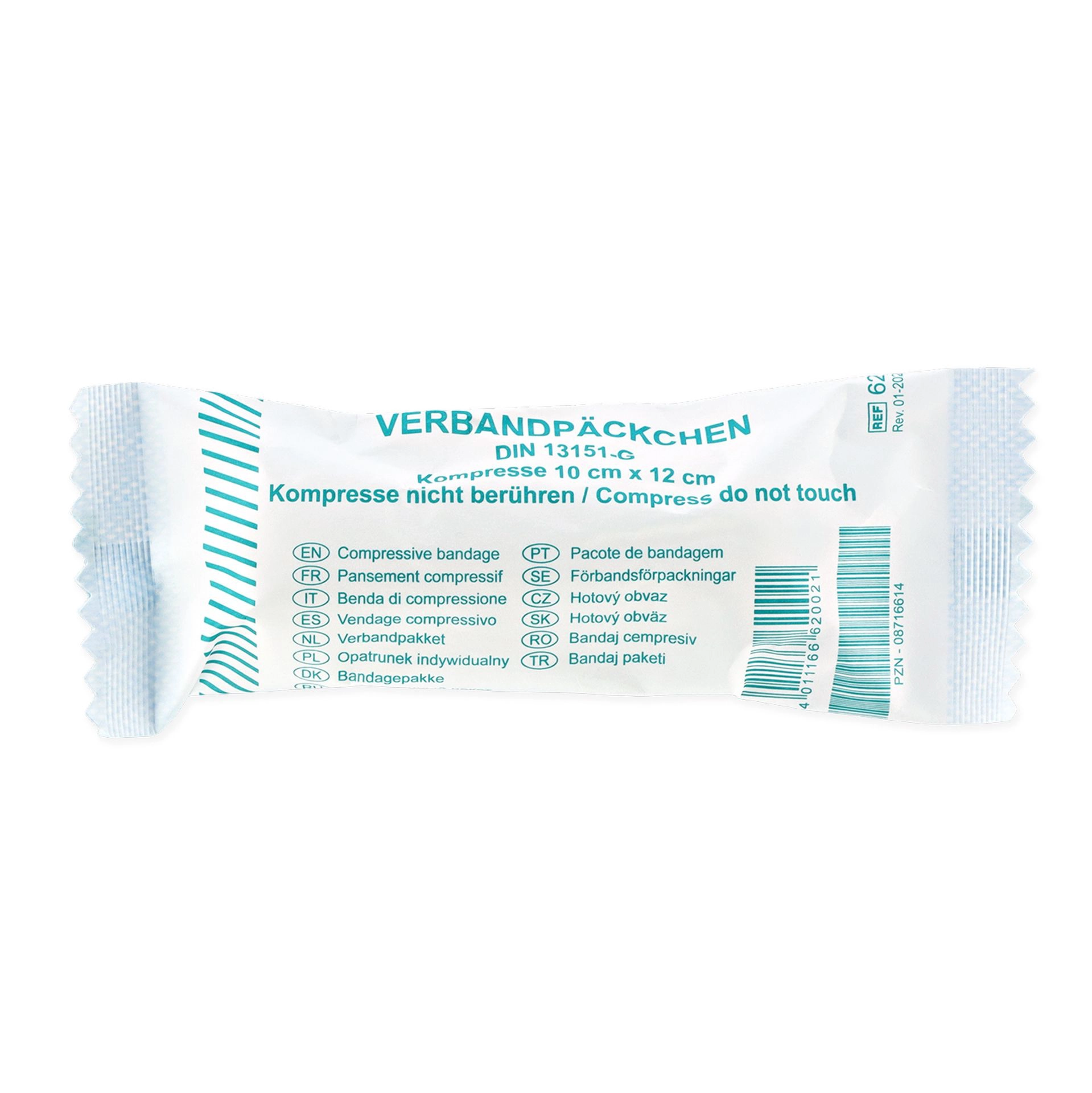 Obväz je vyrobený z pleteného obväzu širokého 10 cm, dlhého 4 m a absorpčnej vložky s rozmermi 10 x 12 cm, ktorá je pevne pripevnená k gázovému materiálu. Obväz má pevný okraj, ktorý sa netrhá.
