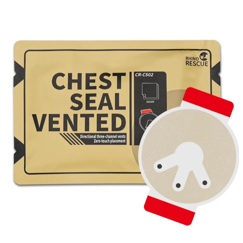 Rhino Rescue Chest Seal je pokročilý okluzívny obväz určený na ošetrenie otvorených poranení hrudníka. Penetrujúce poranenia hrudníka, ktoré vedú k otvoreným poraneniam hrudníka, môžu spôsobiť tenzívny pneumotorax, čo je druhá hlavná príčina úmrtí na bojisku, ktorej sa dá predísť.