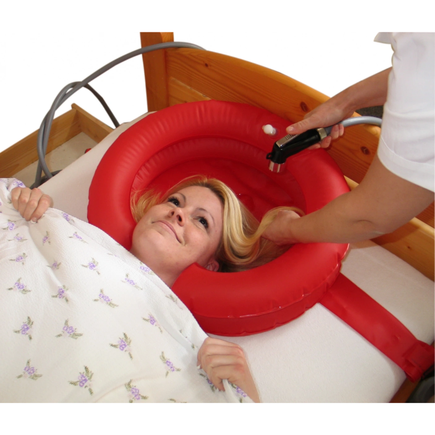 • K príslušenstvu vane patrí sprcha na zdroj teplej vody, ktorá sa pripojí k vodovodu a ovláda sa na konci hadice pri pacientovi.