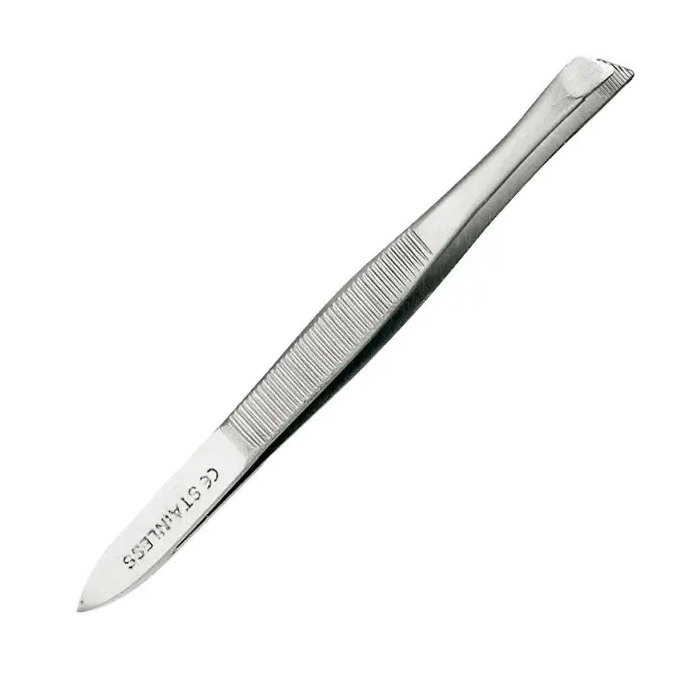 • Šikmá pinzeta s dĺžkou 9 cm je nástrojom určeným na kozmetické účely (vytrhávanie chĺpkov), na odstránenie triesok atď.