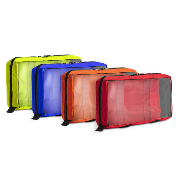 Segregačné vrecká v štyroch farbách z nepremokavej a vysoko umývateľnej tkaniny. Vrchná časť z vysoko priehľadnej fólie umožňuje jednoduchý prehľad o ich obsahu a upevnenie na suchý zips na spodnej strane vrecka umožňuje ich umiestnenie na správne miesto. Uzatváranie na zips . Použité materiály: COATS EPIC jadro vlákna, ľahko umývateľný materiál NYLON a pevný WDP, zaručujú nevídanú odolnosť voči oderu a roztrhnutiu.