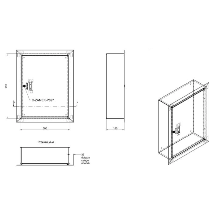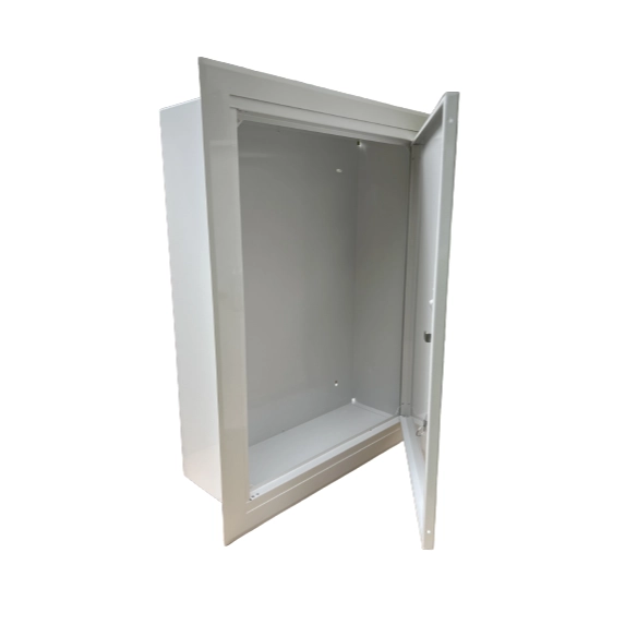 Vstavaná skrinka je určená pre dva hasiace prístroje s hmotnosťou 4 kg alebo 6 kg. Rozmery: 650 x 500 x 180 mm