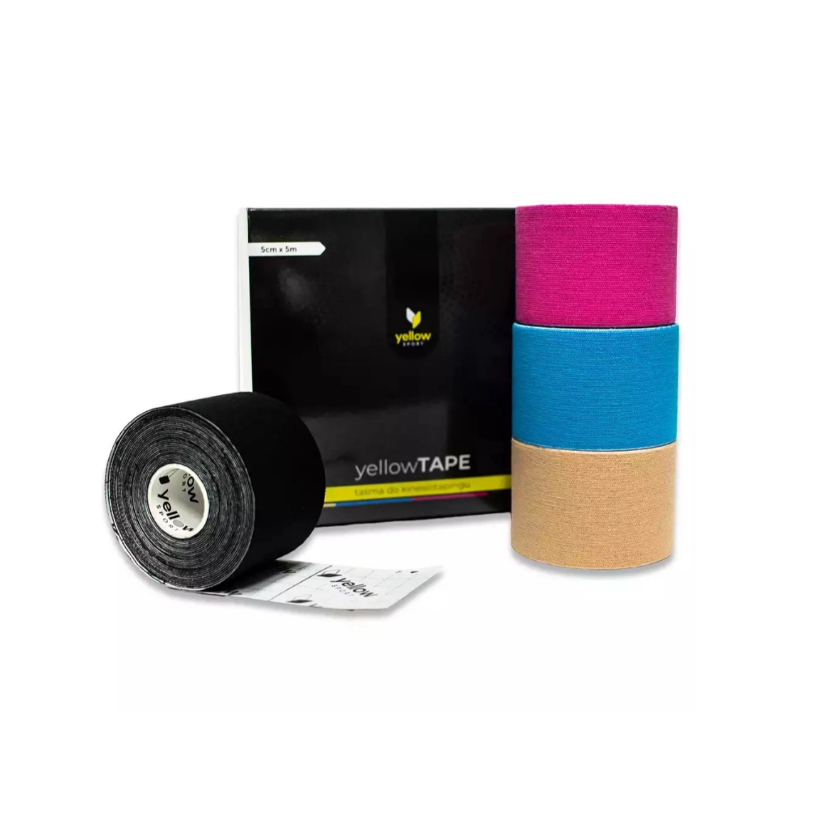 YellowTape – Kineziologická páska 5 cm x 5 m, rôzne farby, 4 ks