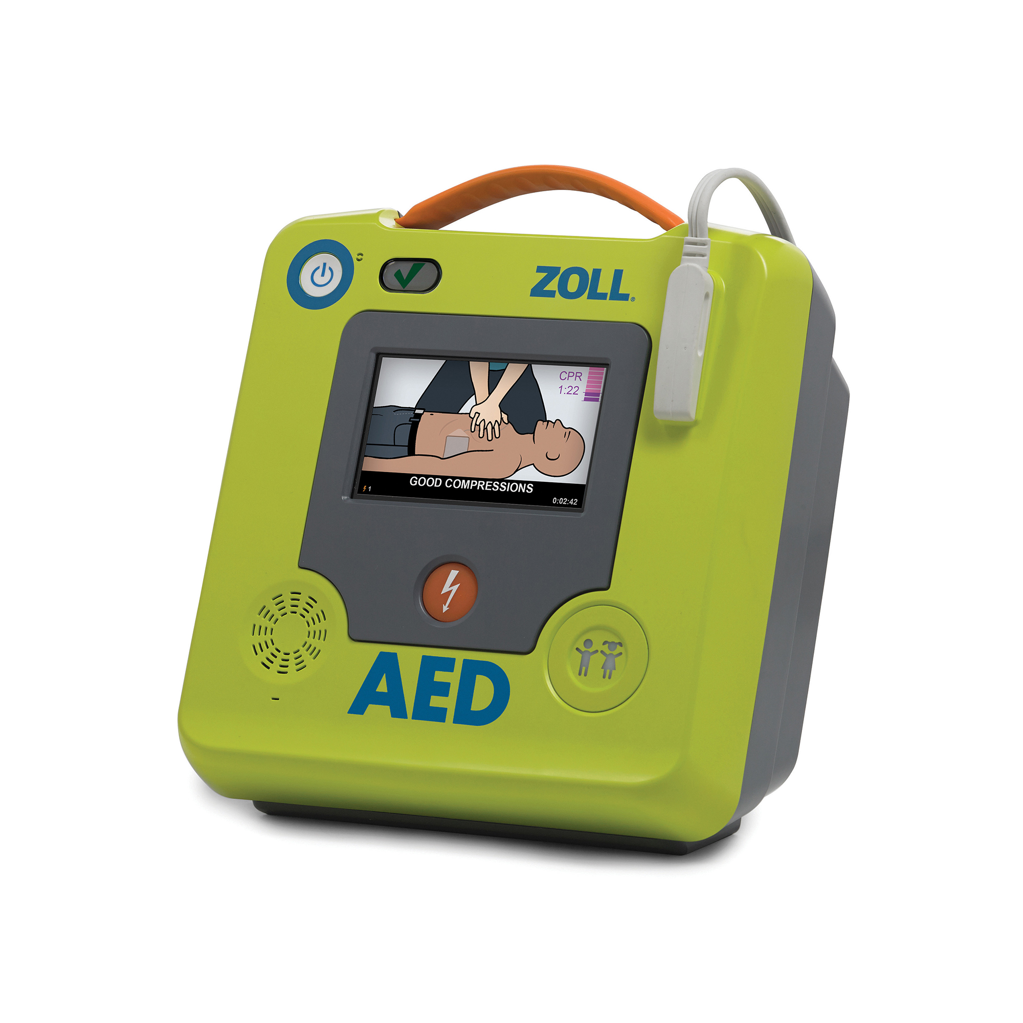 Defibrilátor ZOLL AED 3 je jedinečný moderný a spoľahlivý dvojfázový prístroj pre laické aj profesionálne použitie, ktorý má univerzálne defibrilačné elektródy pre deti aj dospelých a do detského režimu sa prepína len pomocou tlačidla.